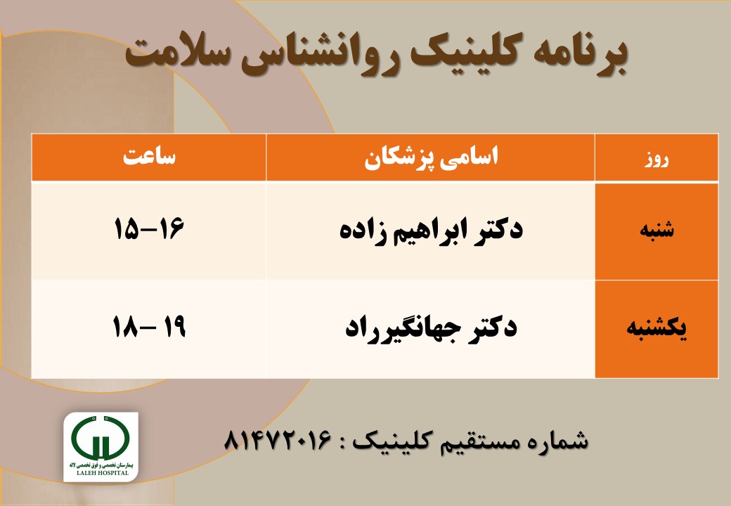 كلينيك پوست و مو كلينيك داخلی مغز و اعصاب كلينيك فيزيوتراپی کلینیک آریتمی