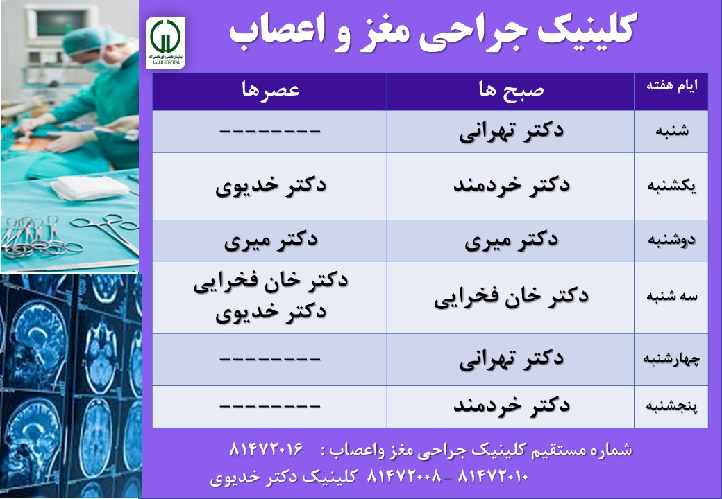 كلينيك اديولوژی كلينيك جراحي مغز كلينيك زنان کلینیک گوش و حلق و بینی